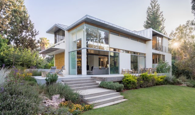 รูปทรงกล่องของตัวบ้านที่ใช้คอนกรีตชิ้นใหญ่ และอลูมิเนียมคอมโพสิตมาตกแต่งในตัวผนัง และหลังคา เน้นย้ำความเป็นสมัยใหม่ได้ดีเยี่ยม ช่องเปิดกระจกขนาดใหญ่ เน้นมุมมอง และเทควิวในเวลาเดียวกัน นำแสงธรรมชาติเข้าสู่ตัวบ้านอีกด้วย