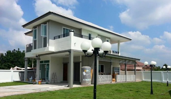 บ้านโดยรอบมีพื้นที่สำหรับทำกิจกรรมปูพื้นหญ้าสีเขียว ประดับประดาไปด้วยโคมไฟ เมื่อเปิดยามค่ำคืนดูอบอุ่น และโรแมนติกสุดๆ