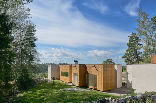 บ้านตากอากาศสไตล์โมเดิร์น ทำเลบนเนินเขา ตกแต่งเรียบง่าย ทูโทนวัสดุจาดคอนกรีต และไม้