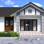 แบบบ้านหลังนี้เป็นบ้านชั้นเดียว ตัวบ้านมีลักษณะแบบตัวยู (U-Shape House) ฐานของบ้านยกขึ้นสูง จึงช่วยป้องกันปัญหาน้ำท่วมขัง ตัวบ้านมีดีไซน์ที่เรียบง่าย ตกแต่งในโทนสีครีม เข้ากับสีน้ำตาลอ่อนจากงานไม้ มีหลังคาทรงหน้าจั่วแบบแฝดที่เข้ากันได้ดีกับตัวบ้าน