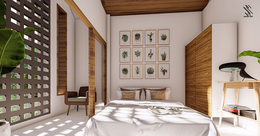 เช่นเดียวกันกับห้องนอนที่ภายในมีพื้นท่ใช้สอยกว้าง ทั้งยังโปร่งสบายด้วยหน้าต่างด้านข้าง ภายในยังถูกตกแต่งอย่างสวยงามด้วยเฟอร์นิเจอร์งานไม้อีกด้วย