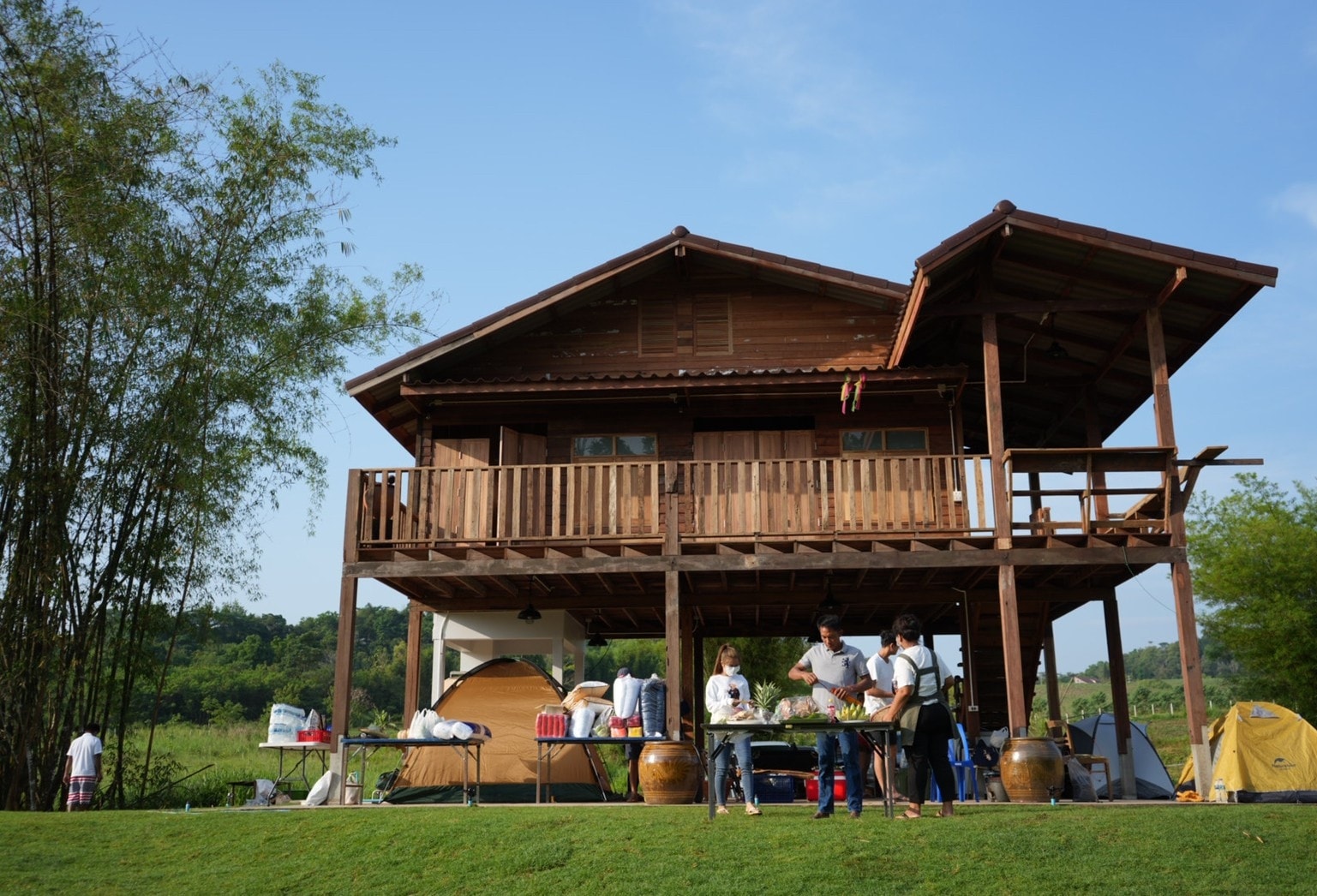 รอบบ้านถูกห้อมล้อมด้วยทุ่งนา ให้บรรยากาศที่สงบและเป็นธรรมชาติ จึงเหมาะกับการทำอาหารง่าย ๆ อย่างพวกปิ้งย่างจากเตาถ่าน