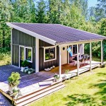 ตัวบ้านทรงหน้าแคบ ตั้งอยู่กลางเมือง โครงสร้างภายนอกทำจากไม้ ขนาดชั้นเดียว ทาตกแต่งด้วยสีขาวเรียบๆ ให้ความรู้สึกสบายๆ เสริมชานบ้านที่ทำจากไม้ จัดสรรเป็นพื้นที่นั่งเล่นน่ารักๆ สำหรับกิจกรรมหลากหลายในครอบครัว ไม่ว่าจะเป็นทานอาหารมื้อเย็น หรือปาร์ตี้สังสรรค์