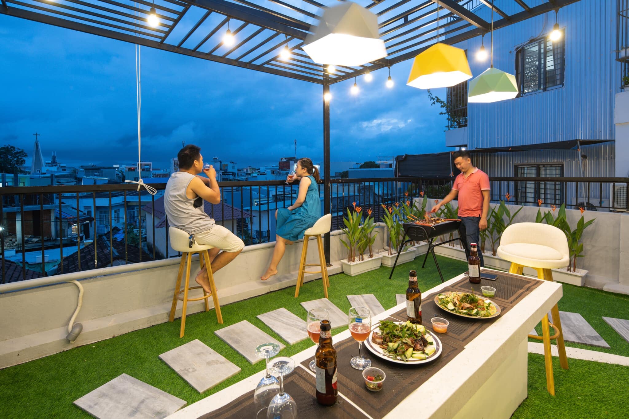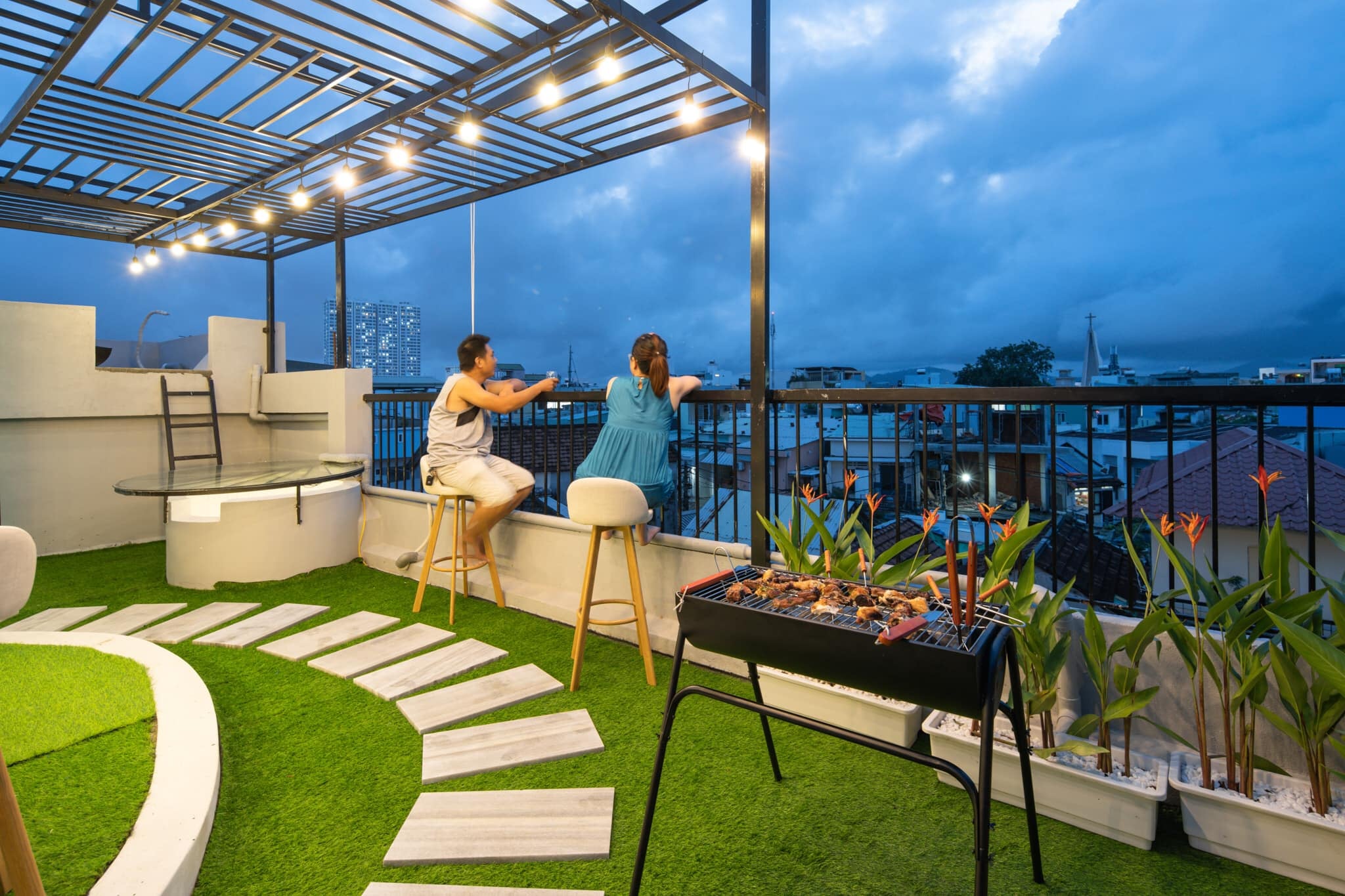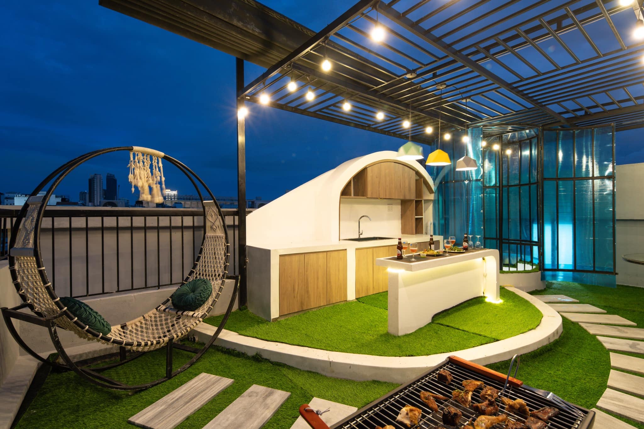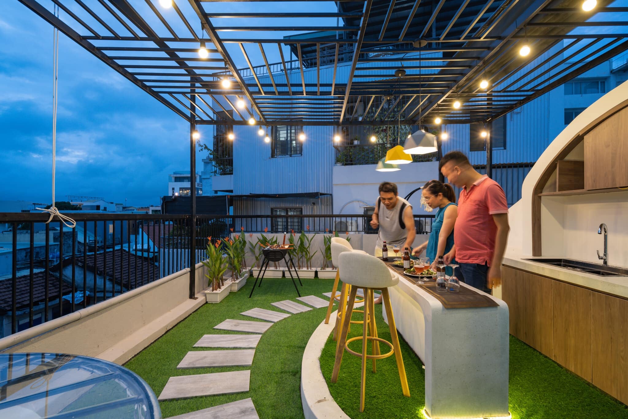 เจ้าของบ้านออกแบบโดยการใช้หญ้าเทียมมาปูพื้น แล้วก็ทำเป็นบาร์รูฟท็อปขนาดย่อม สำหรับพักผ่อนกันในวันชิลๆ ซึ่งเป็นอีกมุมที่หลายคนอยากให้มีที่บ้านตัวเองบ้าง