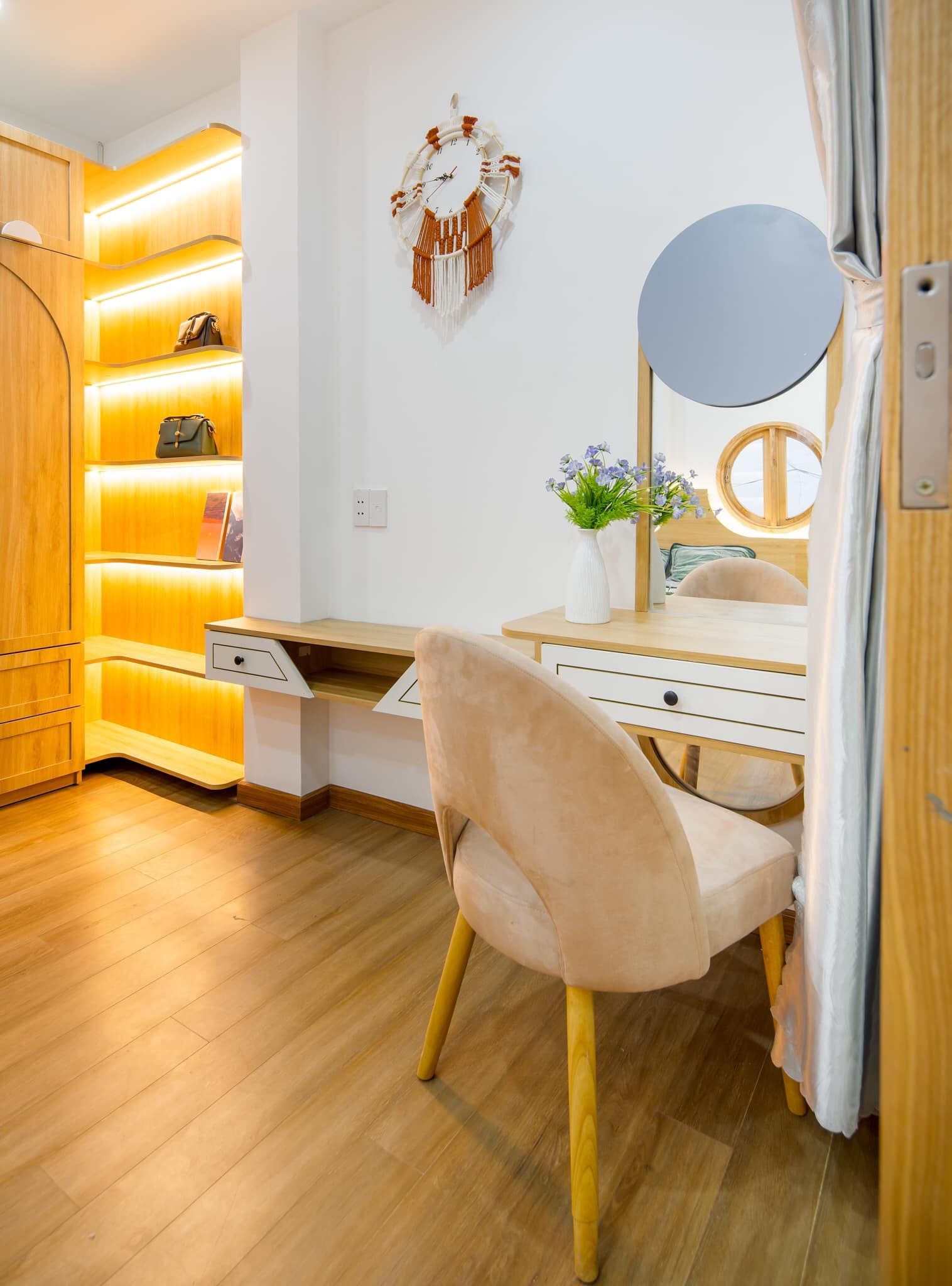 มุมโต๊ะเครื่องแป้ง แอบมองไปเห็นมุมในฝันของสาวๆ หลายคน ที่อยากจะหากระเป๋าหลายๆ ใบมาเติมให้เต็ม