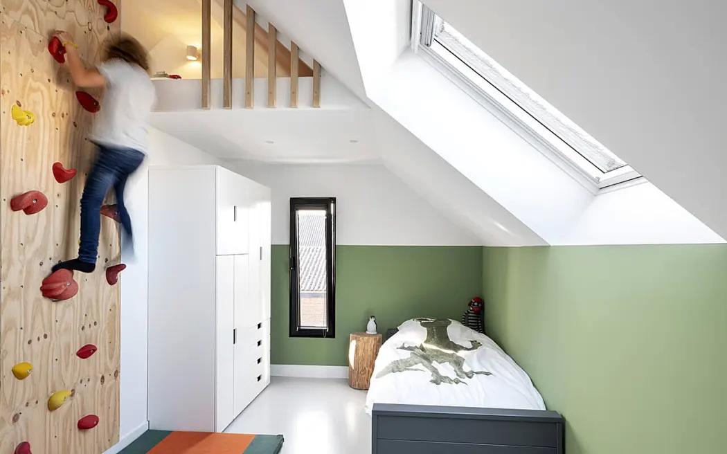 ห้องนอนของลูกจะตั้งอยู่บริเวณพื้นที่ใต้หลังคา ซึ่งก็มีขนาดกำลังดี มีพื้นที่ให้เด็ก ๆ ได้เล่นสนุกกันอย่างเพลิดเพลินอีกด้วย
