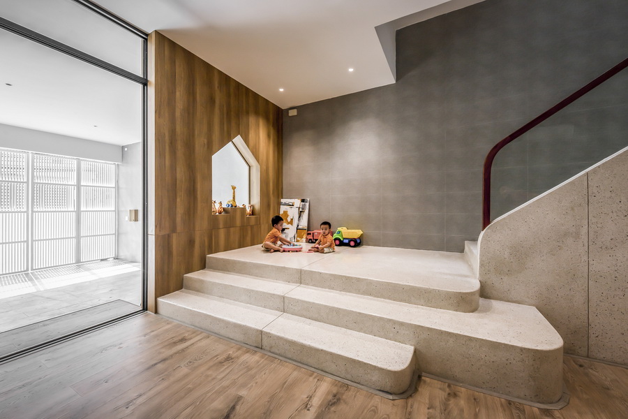 พื้นที่ในส่วนนี้ถูกออกแบบมาเพื่อเป็นห้องนอนของลูกโดยเฉพาะ ซึ่งภายในมีทั้งเตียงและตู้เก็บของ ความพิเศษจะอยู่ที่การออกแบบผนังเป็นกระจกใส จึงทำให้พ่อแม่สามารถสอดส่องลูกน้อยได้ตลอดเวลา
