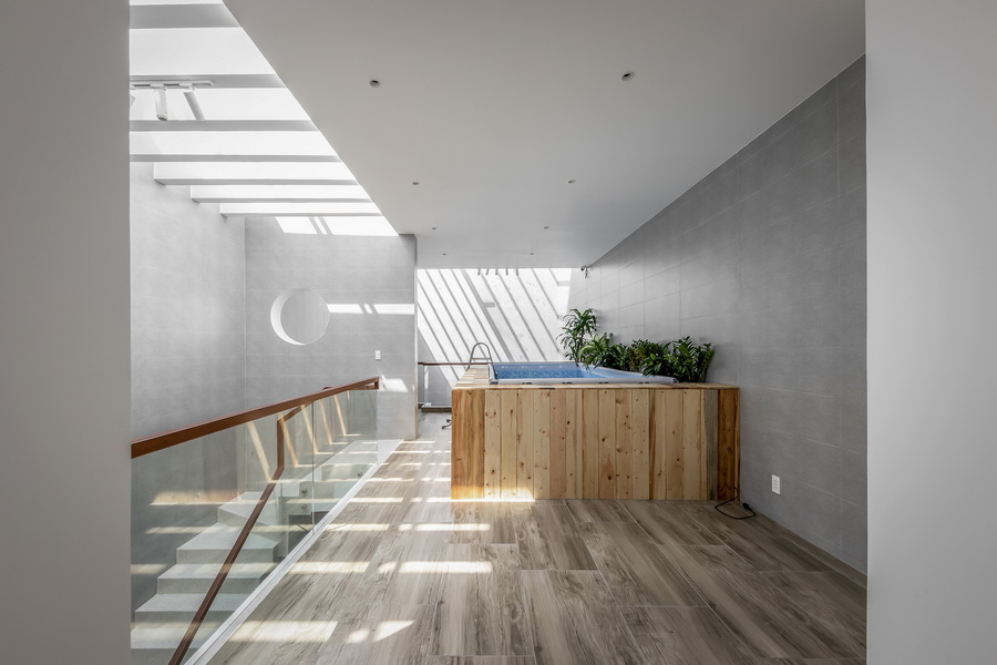 บริเวณชั้นบนสุดจะเป็นพื้นที่ดาดฟ้าที่ออกแบบมาเพื่อการพักผ่อนโดยเฉพาะ โดยมีสวนหย่อมขนาดเล็กไว้เพิ่มความสดชื่น ทั้งยังมีหลังคาแบบกันสาดที่ช่วยลดแสงแดดที่จะสาดส่องเข้ามาอีกด้วย