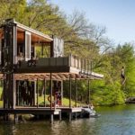 ทำเลบ้านหลังนี้อยู่กลางที่โล่ง รายล้อมด้วยไม้พุ่มเตี้ย และต้นไม้ใหญ่เล็กๆน้อย แนะนำให้เลือกออกแบบบ้านโมเดิร์นประเภทนี้ ไว้ตามที่ร่ม เช่นใต้ต้นไม้ รวมทั้งตามเนินเขามากกว่าในตัวเมือง
