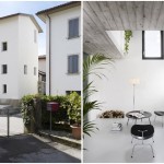 ตกแต่งภายในด้วยพื้นไม้สีน้ำตาล ลวดลายสวย ดีไซน์กันให้ตัดกับผนังฉาบเรียบสีขาวทั้งหลัง สวยงามไปจนถึงฝ้าเพดานจากปูนเปลือย ตีไล่ระดับไปตามแนวหลังคา