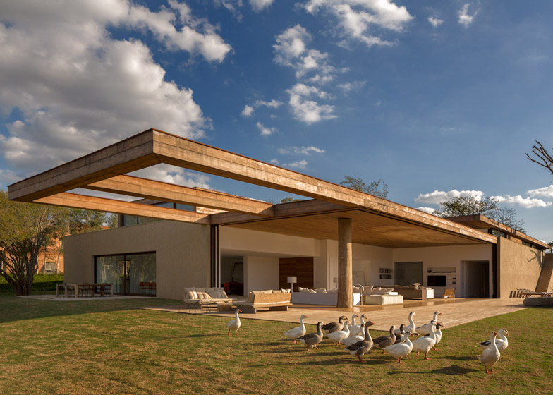 บ้านวิลล่าพร้อมสระว่ายน้ำ ดีไซน์สมัยใหม่ รูปทรงภูมิฐาน โทนสีอบอุ่น ท่ามกลางธรรมชาติแบบเนินเขา
