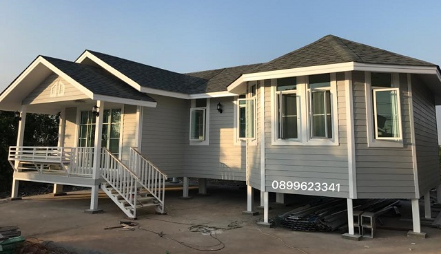 ลักษณะบ้านชั้นเดียว ยกพื้นสูงเล็กน้อย โครงสร้างทำจากวัสดุเหล็ก ผนังภายนอกก่อด้วยไม้ฝาทาสีเทา หลังคาเลือกใช้สองแบบ โดยที่ด้านซ้ายมือจะเป็นทรงหน้าจั่ว ส่วนทางด้านขวาจะเป็นหลังคาทรงปั้นหยา ซึ่งเป็นโดมห้องนั่งเล่นน่ารักๆ ตามแบบฉบับบ้านตะวันตกสุดคลาสสิค