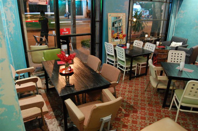 จำได้ว่าคืนก่อนเปิดร้าน จะตีสองแล้ว ยังคุยกันอยู่ว่าผนังร้านยังโล่งๆ อยู่เลย เนื่องจากงบหมด ไม่มีเงินซื้อของตกแต่งแล้ว แรงฮึด จังหวะสุดท้ายก่อนจะหมดแรง พี่หุ้นส่วนก็ไอเดียบรรเจิด เอาสีทาผนังที่เหลือๆ มาเพ้นท์ภาพ ที่เคยปริ้นท์ๆ กันมาดูเรฟเฟอร์เรนท์ ก็ออกมาเป็นผนังลายดอก เช่นนี้แล