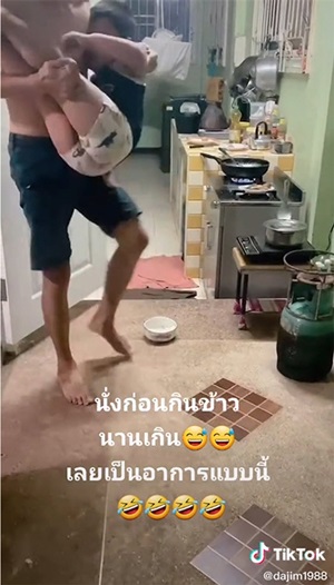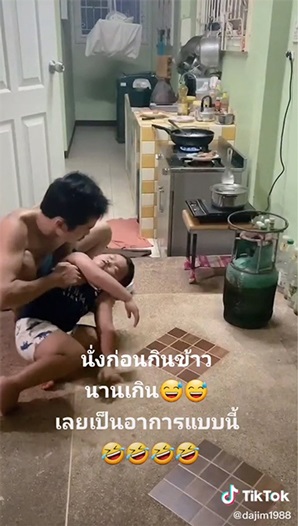 คลิปน่ารักๆ จากคุณ @dajim1988 ที่โพสต์ลงในติ๊กต็อกเผยให้เห็นระหว่างที่คุณพ่อกำลังยืนทำกับข้าวให้ลูกชายวัย 3 ขวบ แต่ดูเหมือนว่าเจ้าลูกชายจะรอนานไปหน่อยถึงกับขนาดที่ว่านั่งหลับรอกันเลยทีเดียว