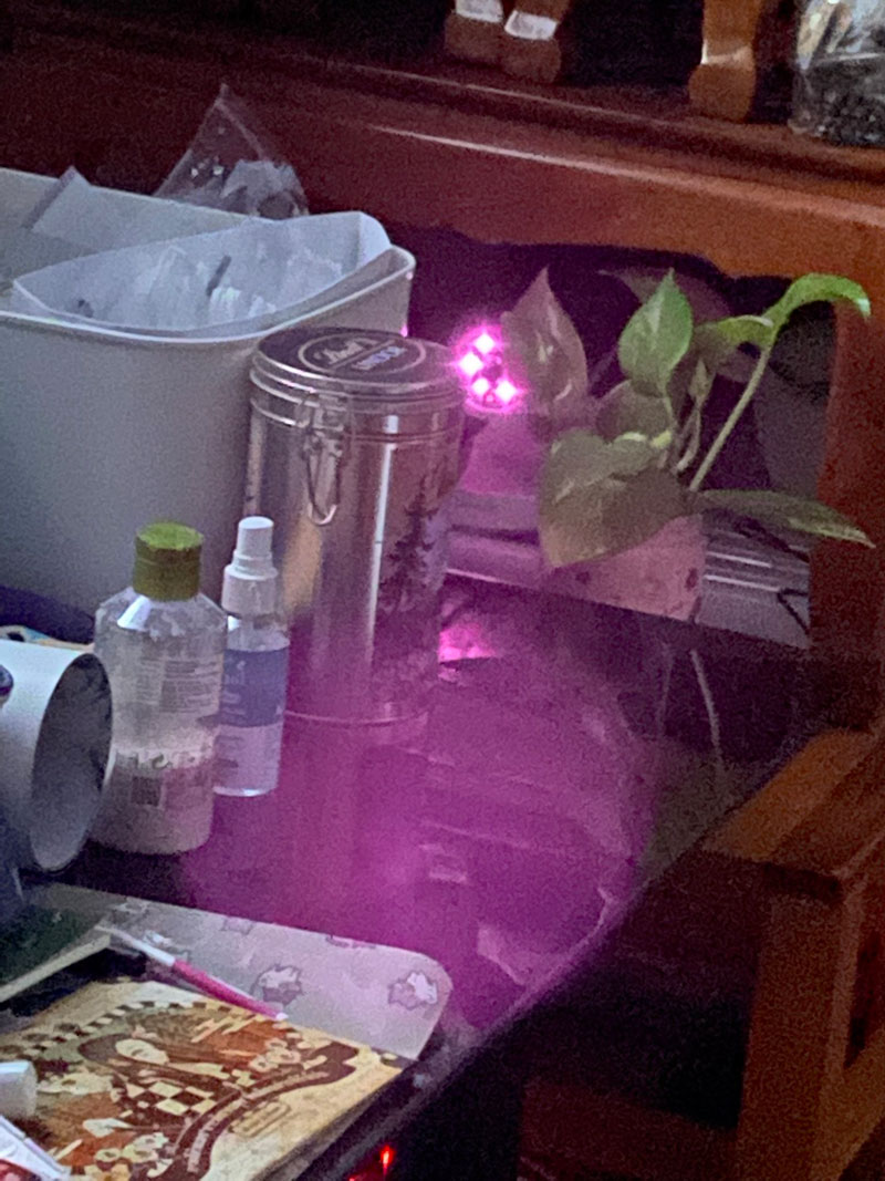 ซึ่งนั่นส่งผลให้เธอสังเกตเห็นแสงอะไรสักอย่างตรงชั้นวางของ ที่ปกติจะมองเห็นได้ยากเพราะมีแจกันพลูด่างบังเอาไว้ ทำให้เธอตกใจเป็นอย่างมาก