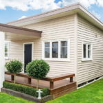 ลักษณะบ้านชั้นเดียวแยกส่วนเป็นสองฝั่ง โครงสร้างยกพื้นสูงโปร่งเป็นรูปทรงคล้ายกล่อง ผนังภายนอกทาสีขาวเรียบ ตัดกับงานเหล็กสีดำของวงกบ เสาบ้าน และราวกันตก