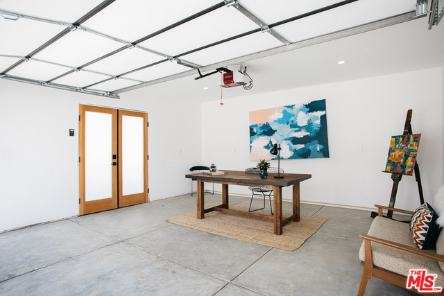 ภายในสตูดิโอทำงานจะตกแต่งภายในด้วยสีขาว เพื่อให้ห้องสว่างเหมาะกับการทำงาน หากสังเกตที่ด้านบน จะเห็นโครงเหล็กที่เจ้าของติดเอาไว้เพื่อการทำงานด้านสตูดิโอโดยเฉพาะ