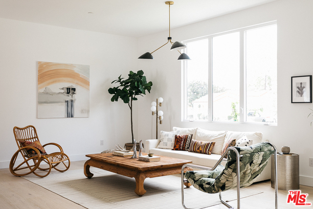ภายในห้องนั่งเล่นถูกตกแต่งในสไตล์มินิมอลด้วยเฟอร์นิเจอร์จำนวนพอเหมาะ พร้อมสีเอิร์ธโทนที่ช่วยให้ห้องมีบรรยากาศที่อบอุ่นน่าอยู่