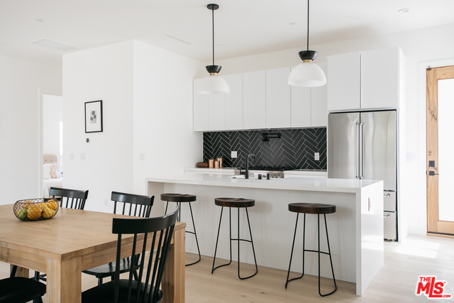 สำหรับมุมนี้จะเป็นพื้นที่ห้องครัวเล็ก ๆ พร้อมกับพื้นที่รับประทานอาหาร ซึ่งยังคงใช้โทนสีอ่อนเป็นธีมหลัก แต่บริเวณนี้จะมีการตกแต่งที่ดูมีความโมเดิร์นขึ้น