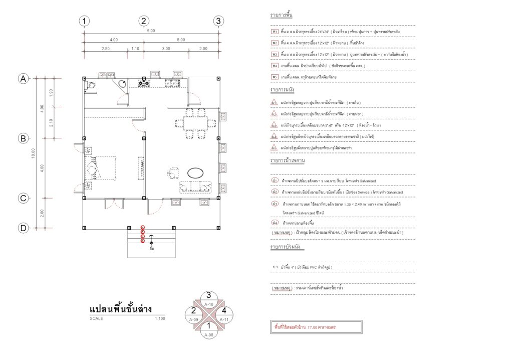 สำหรับบ้านหลังนี้ ประกอบไปด้วย 1 ห้องนอน 1 ห้องน้ำ รวมพื้นที่ใช้สอยทั้งหมด 93 ตารางเมตร (ตัวบ้าน 77 ตารางเมตร + ระเบียง 16 เมตร) งบประมาณก่อสร้างเริ่มต้น 800,000 บาท หากเพื่อน ๆ ชาวเว็บต้องการข้อมูลเพิ่มเติมเกี่ยวกับแบบบ้านฉบับนี้ สามารถสอบถามคุณชลอผ่านช่องทางติดต่อท้ายบทความนี้ได้เลยครับ ^_^