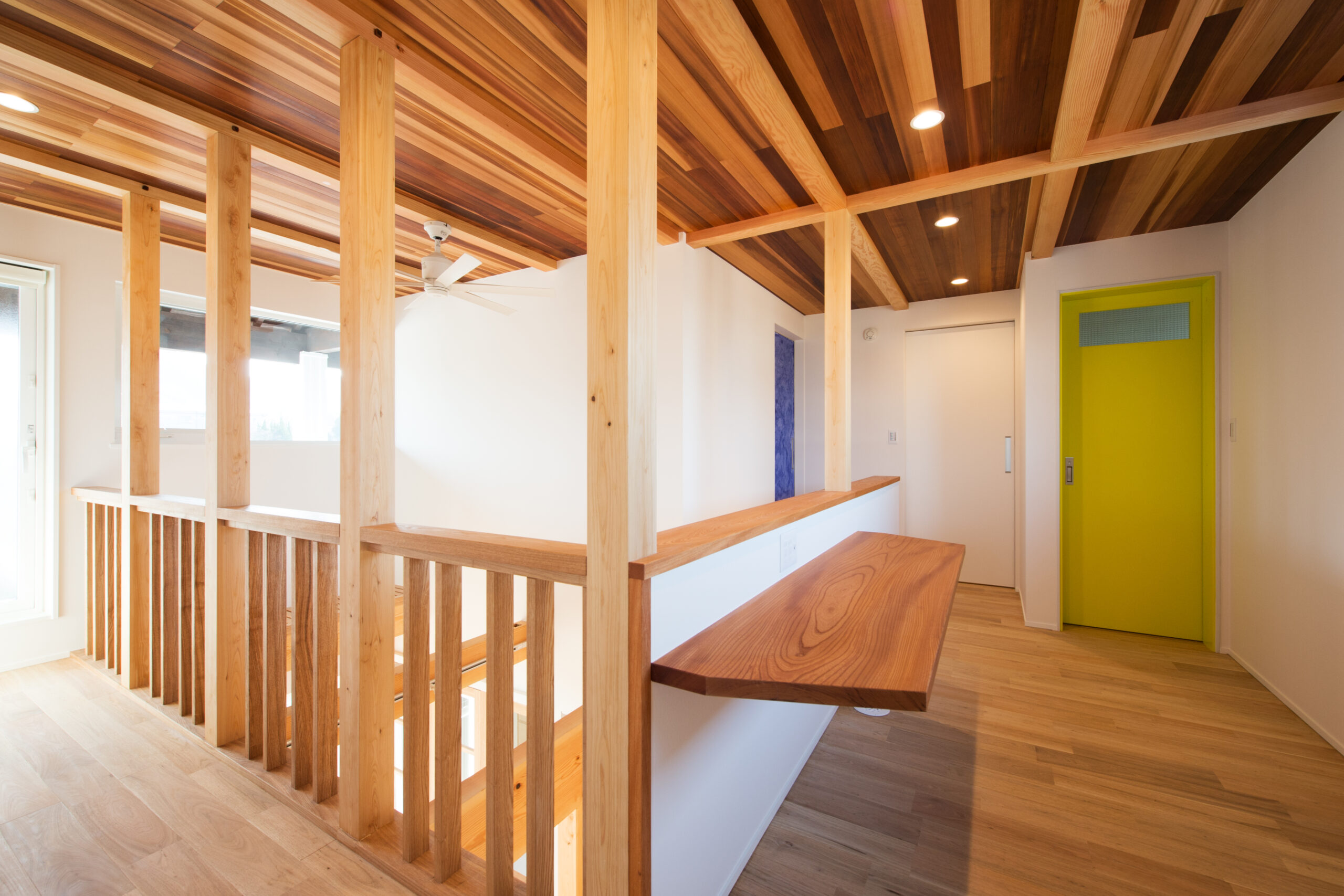 ชั้นบนของบ้าน จะเป็นโถงชั้นลอยที่มีบรรยากาศโปร่งสบาย ทั้งยังมีบาร์เล็ก ๆ เอาไว้ให้ใช้งานแบบอเนกประสงค์อีกด้วย
