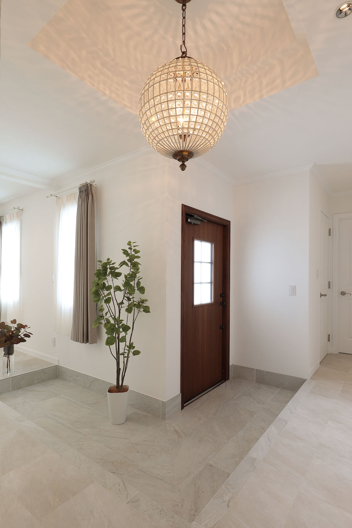 เมื่อเข้ามาภายในบ้าน เราก็จะพบกับบรรยากาศที่โปร่งโล่งของบ้าน ผนังภายในยังคงธีมโทนสีขาว ของตกแต่งต่าง ๆ โดยเฉพาะโคมไฟระย้า จะมีรูปแบบและดีไซน์ที่หรูหรา สร้างมนต์เสน่ห์ให้บ้านได้เป็นอย่างดี