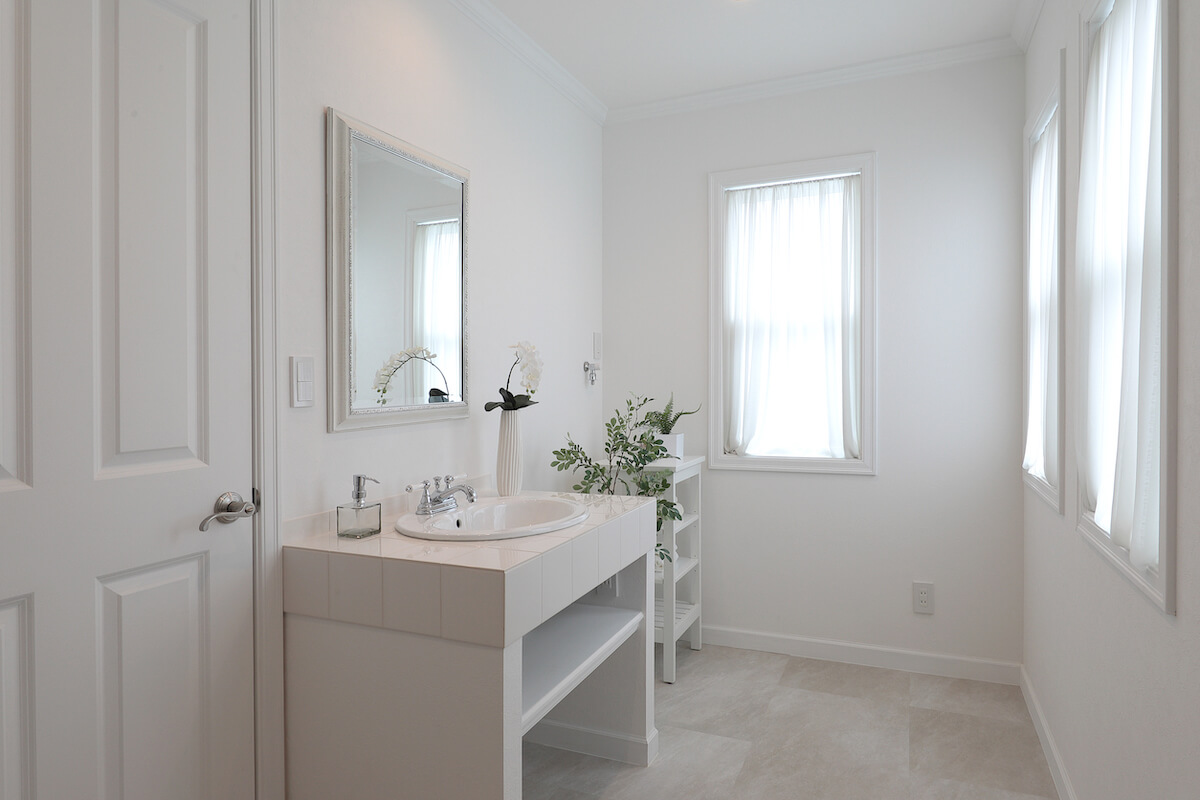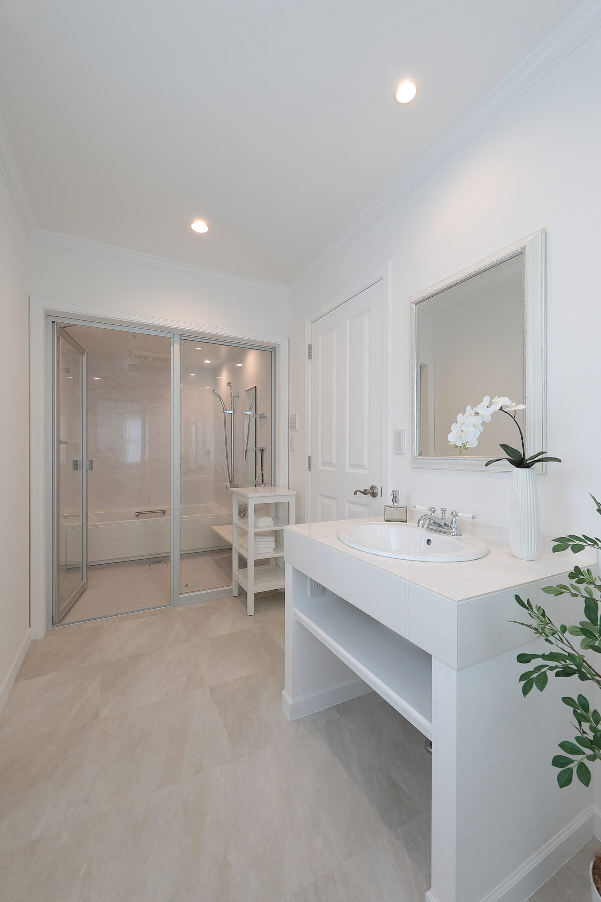 เช่นเดียวกันกับห้องน้ำ ที่ยังคงเลือกใช้โทนสีขาวกับทุก ๆ องค์ประกอบ นับว่าเป็นผลงานการออกแบบและตกแต่งบ้านที่มีเสน่ห์อีกหลังหนึ่งเลย