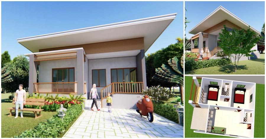 แบบบ้านชั้นเดียวสไตล์โมเดิร์น ดีไซน์ในโทนสีขาวสวยสง่า 2 ห้องนอน 2 ห้องน้ำ พื้นที่ใช้สอย 80 ตร.ม.