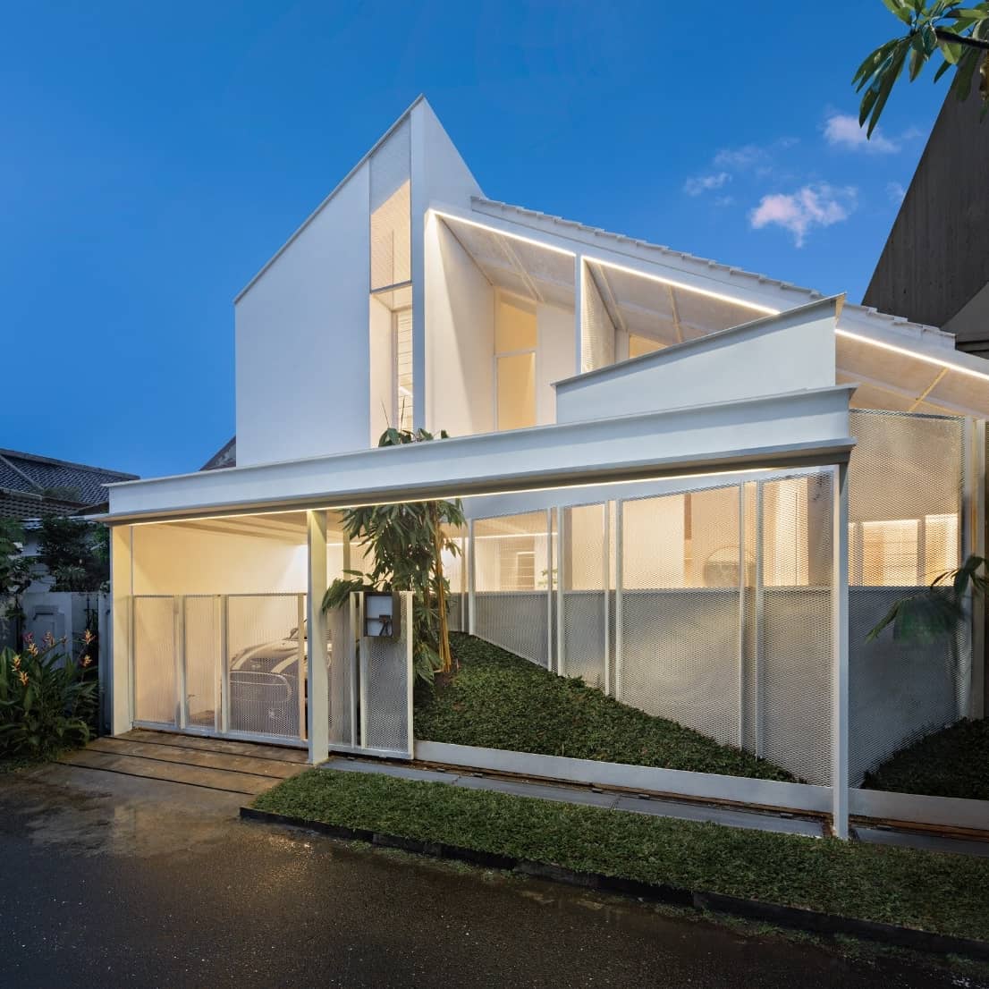 บ้านหลังนี้เป็นบ้านขนาดสองชั้น ตัวบ้านมีการออกแบบที่อิงมาจากรูปทรงเรขาคณิต โดยสถาปนิกได้ออกแบบให้ตัวบ้านดูมีความโฉบเฉี่ยวทันสมัย ในด้านการตกแต่งนั้น บ้านหลังนี้เลือกใช้โทนสีขาวทั้งหลัง จึงให้บรรยากาศที่ดูสวยงามสบายตา