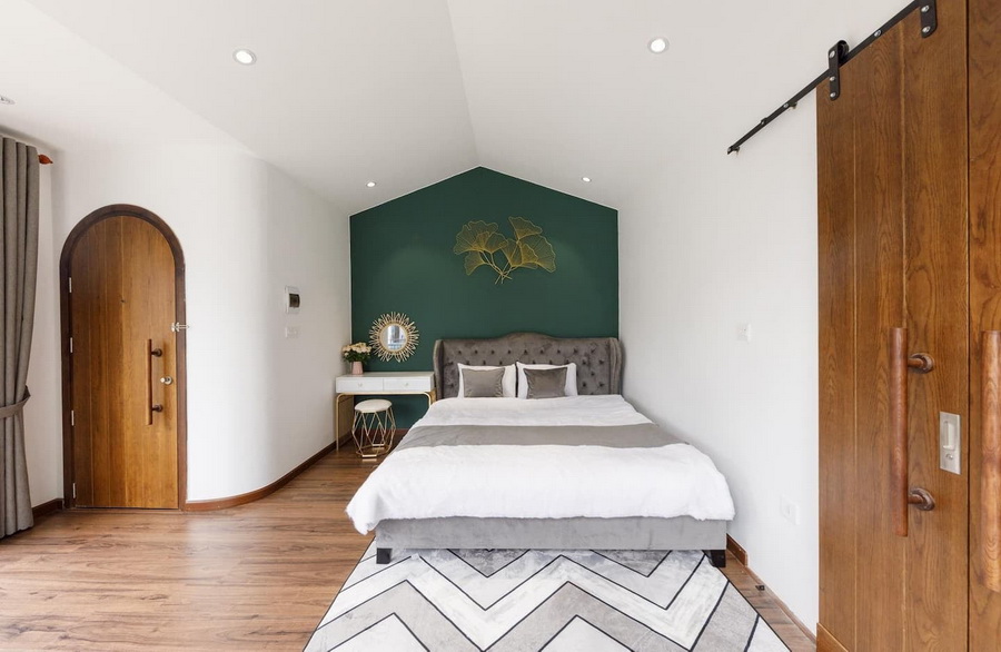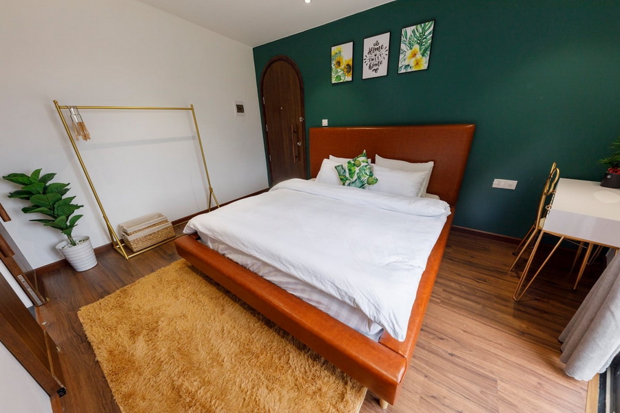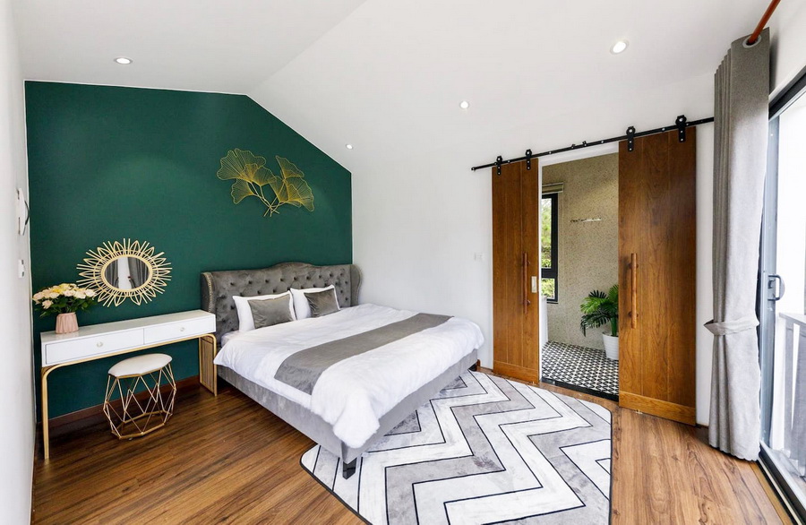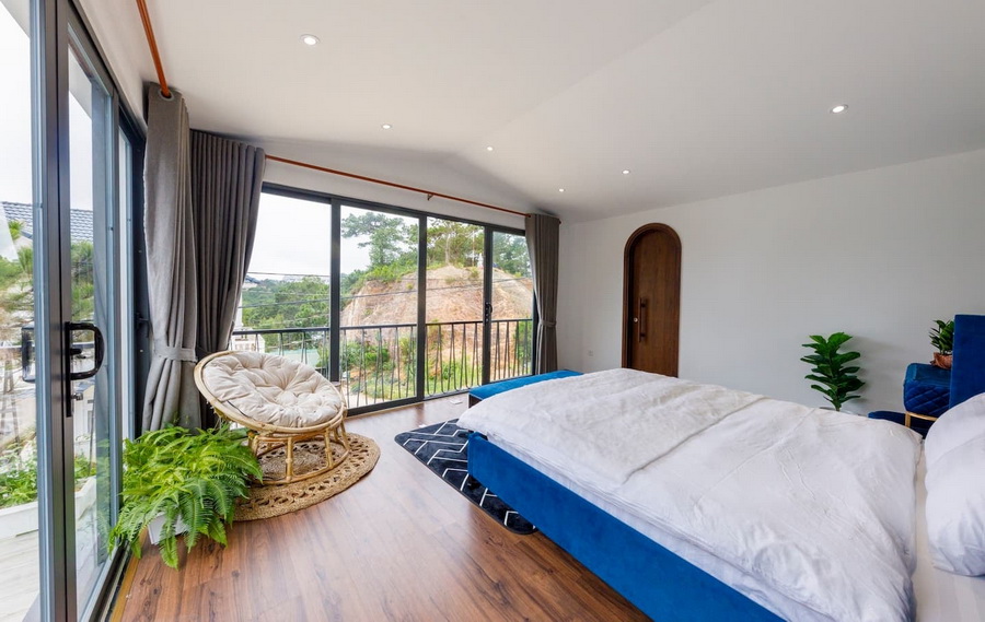 สำหรับห้องนอนนั้น ถูกตกแต่งในบรรยากาศที่ชวนผ่อนคลาย เตียงนอนจะหันหน้าเข้าสู่หน้าต่างบานใหญ่ที่ช่วยส่งแสงอ่อน ๆ ยามเช้ามาปลุกเราได้อย่างอบอุ่น