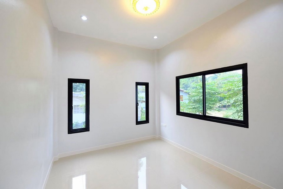 ทางด้านห้องนอน เป็นอีกห้องที่มีพื้นที่ใช้สอยที่พอประมาณ ภายในโปร่งสบายด้สนหน้าต่างหลายบาน ผนังสีอ่อนช่วยให้การพักผ่อนเป็นไปอย่างผ่อนคลาย