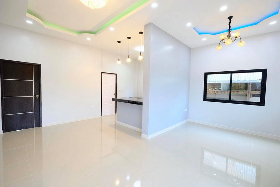 เมื่อเข้ามาภายในบ้าน เราจะพบกับห้องโถงใหญ่ของบ้าน ซึ่งทางสีผนังในโทนสีอ่อน พื้นที่ภายในมีขนาดใหญ่จึงแบ่งเป็นส่วนห้องนั่งเล่น และห้องครัว โดยในห้องนั่งเล่นมีพื้นที่มากเป็นพิเศษ จึงสามารถตกแต่งและจัดวางเฟอร์นิเจอร์ได้อย่างใจต้องการ