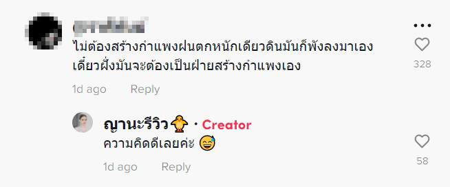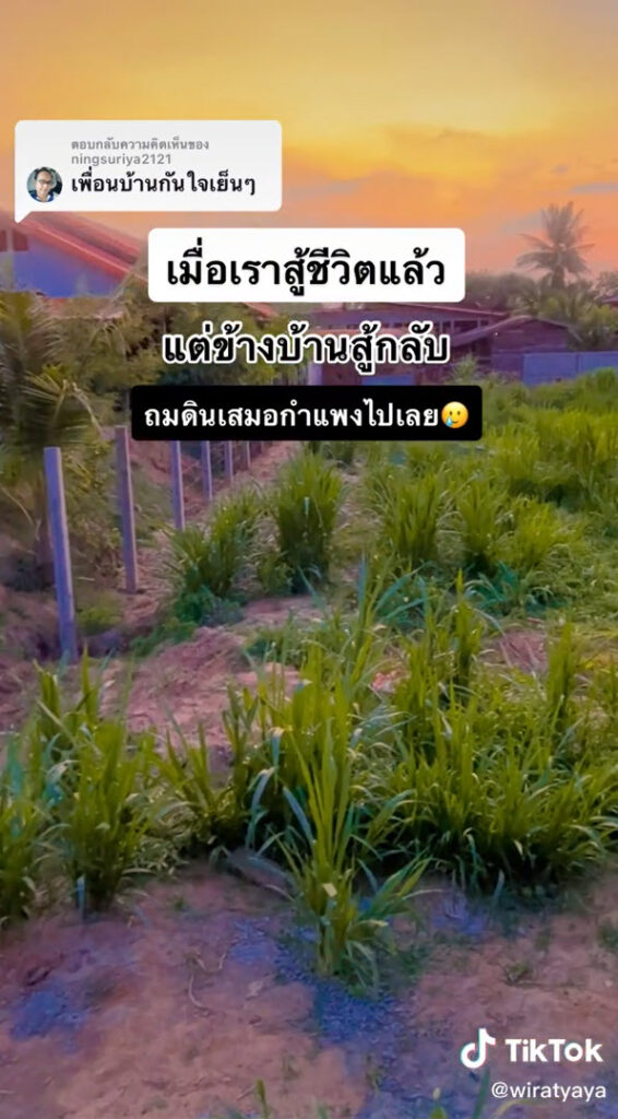 เสียงนี้ยืนยันว่า ถ้าหากเรายังทำกำแพงต่อไป แล้วเพื่อนบ้านก็ยังถมดินแบบนี้ จะทำให้เสี่ยงต่อการพังถล่มในอนาคตแน่