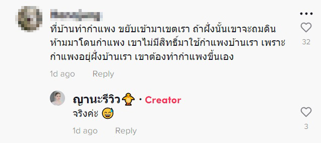 แน่นอนว่าทางเพื่อนบ้านไม่มีสิทธิ์มาใช้ประโยชน์จากกำแพงของเรา โดยเฉพาะการกระทำในลักษณะนี้ที่อาจก่อให้เกิดอันตรายในอนาคตได้
