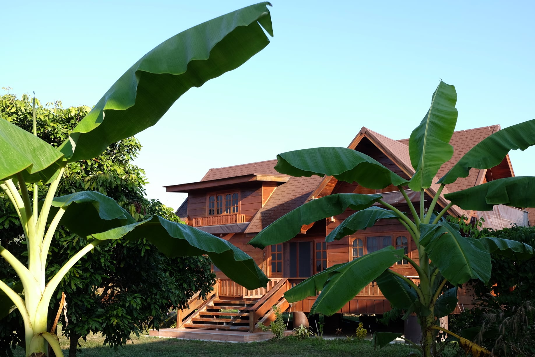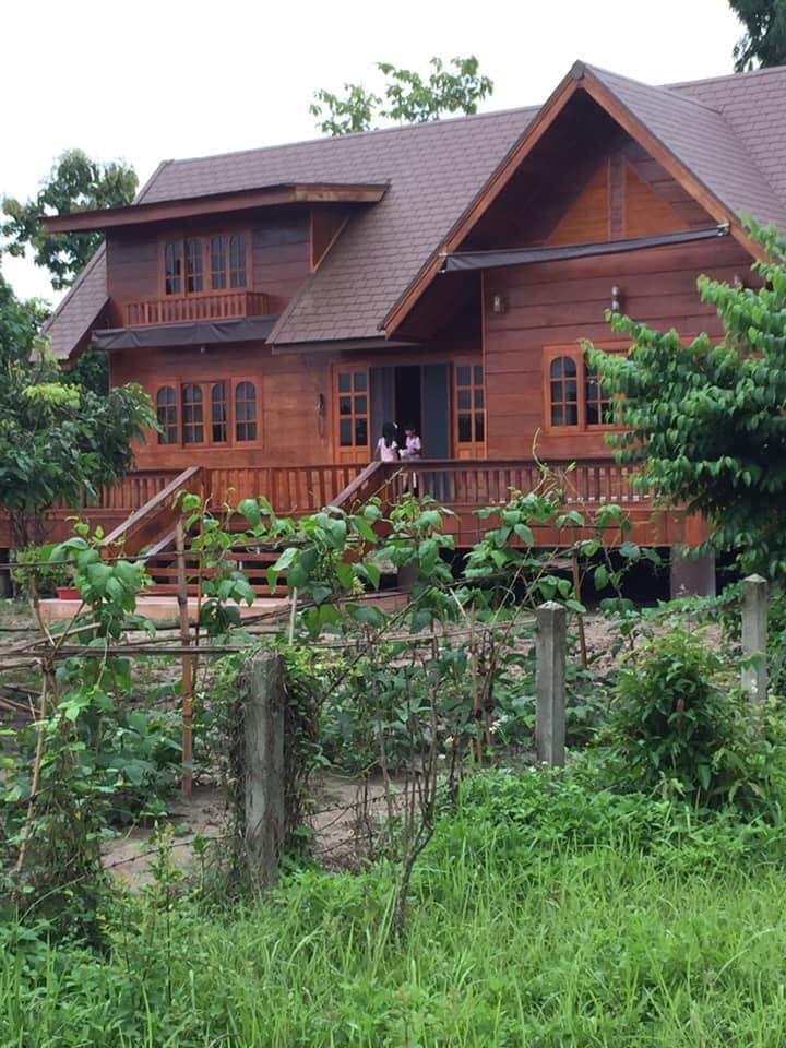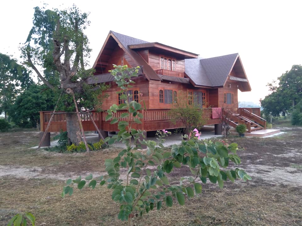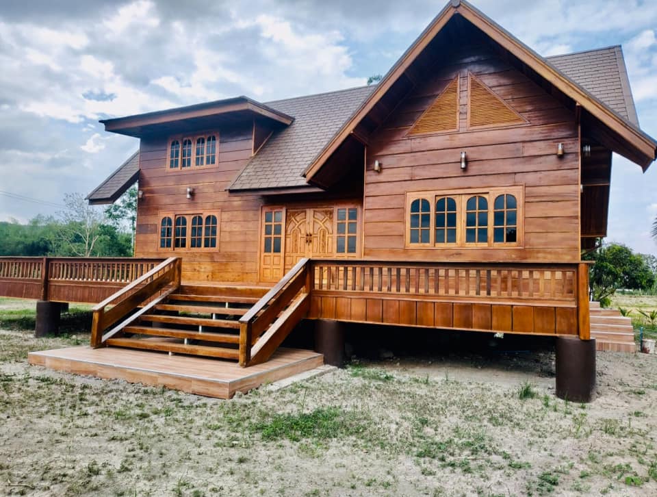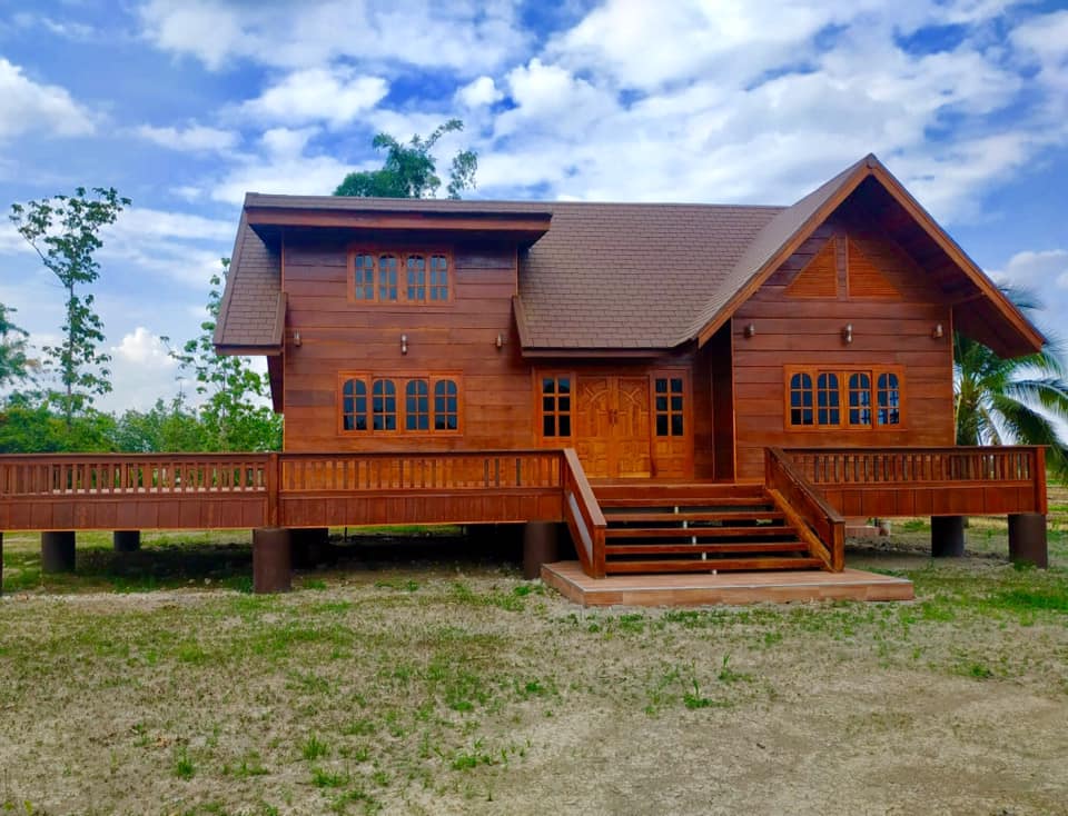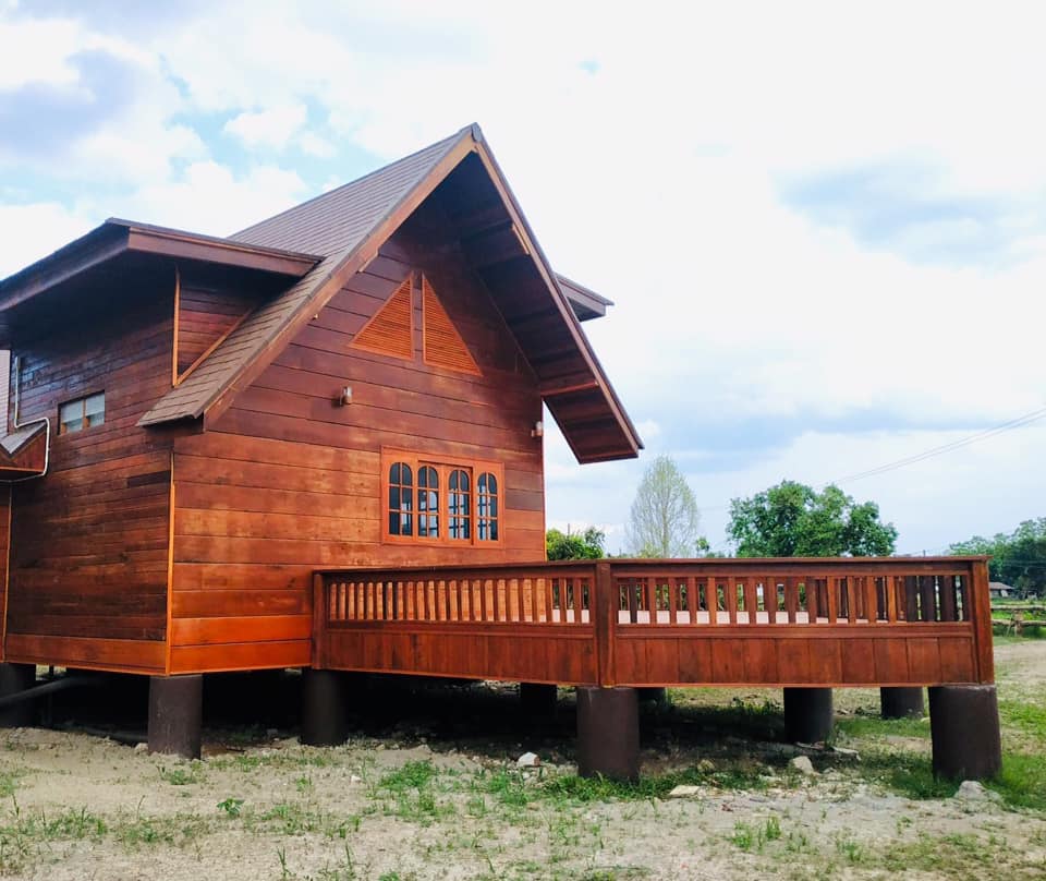 บ้านหลังนี้จะเป็นบ้านไม้ที่ออกแบบให้มีใตุ้ถุนยกขึ้นสูง ตัวบ้านจะมีดีไซน์แนวคันทรี มีหลังคาในรูปทรงหน้าจั่วสวยงาม และแน่นอนว่า บ้านหลังนี้ถูกสร้างขึ้นจากไม้ทั้งหลัง จึงให้โทนสีน้ำตาลที่สวยงามและกลมกลืนไปกับธรรมชาตินอกบ้าน