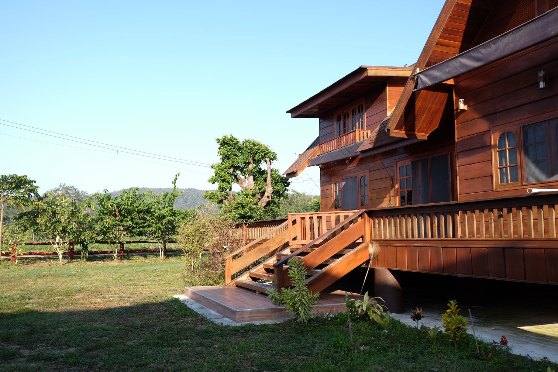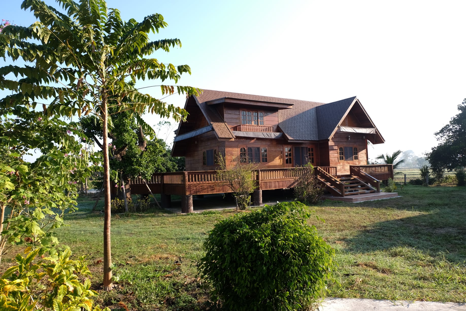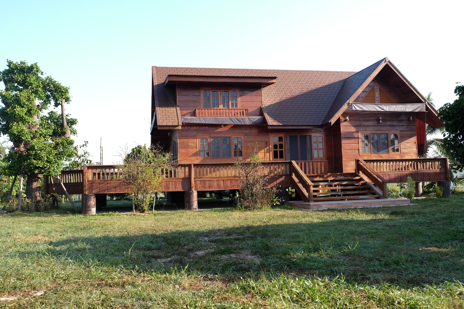 บ้านหลังนี้จะเป็นบ้านไม้ที่ออกแบบให้มีใตุ้ถุนยกขึ้นสูง ตัวบ้านจะมีดีไซน์แนวคันทรี มีหลังคาในรูปทรงหน้าจั่วสวยงาม และแน่นอนว่า บ้านหลังนี้ถูกสร้างขึ้นจากไม้ทั้งหลัง จึงให้โทนสีน้ำตาลที่สวยงามและกลมกลืนไปกับธรรมชาตินอกบ้าน