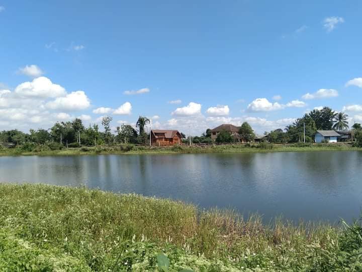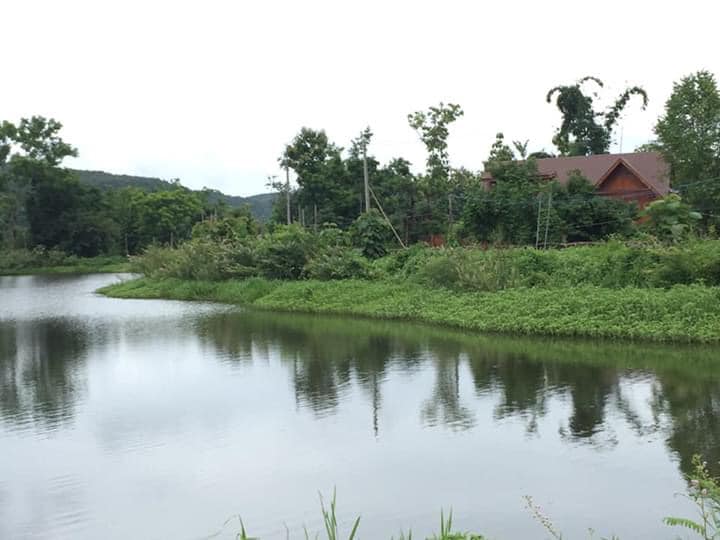 จากระยะไกล เราก็จะเห็นว่าพื้นที่นอกบ้านยังมีอ่างเก็บน้ำขนาดใหญ่อีกด้วย นั่นจึงทำให้บ้านไม้หลังนี้ เป็นบ้านที่ทั้งสวยงามและเต็มไปด้วยความสงบร่มรื่น