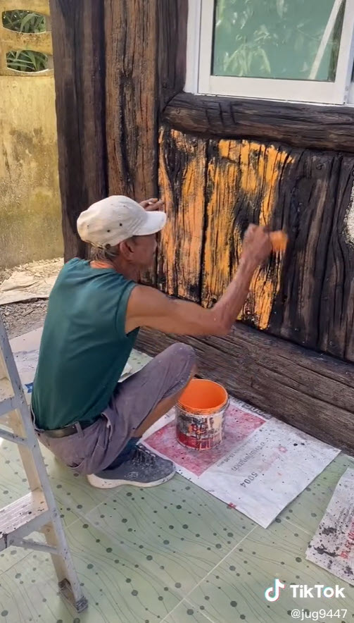 โดยผู้ใช้บัญชี Tiktok @jug9447 ได้โพสต์คลิปการทำงานของช่างวัยเก๋าในการตกแต่งบ้านปูนให้เป็นบ้านที่มีลวดลายของไม้ธรรมชาติ ซึ่งดู ๆ จากผลงานแล้ว ช่างกลุ่มนี้น่าจะมีประสบการณ์ยาวนานเลยล่ะ