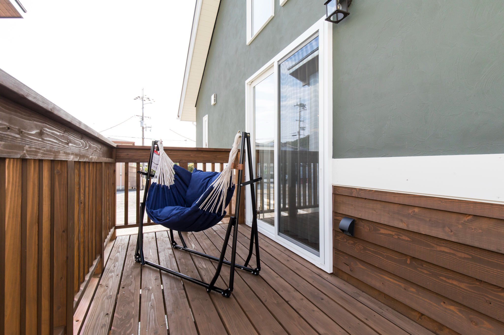 ที่ชั้นสองมีระเบียงเล็ก ๆ เอาไว้ให้ได้ออกมานั่งพักผ่อนหย่อนใจอีกด้วย ในวันที่อากาศดี ๆ หรือช่วงกลางคืน ก็สามารถมาใช้เวลาพักผ่อน ชมบรรยากาศนอกบ้านกันได้อย่างเต็มที่เลยล่ะ