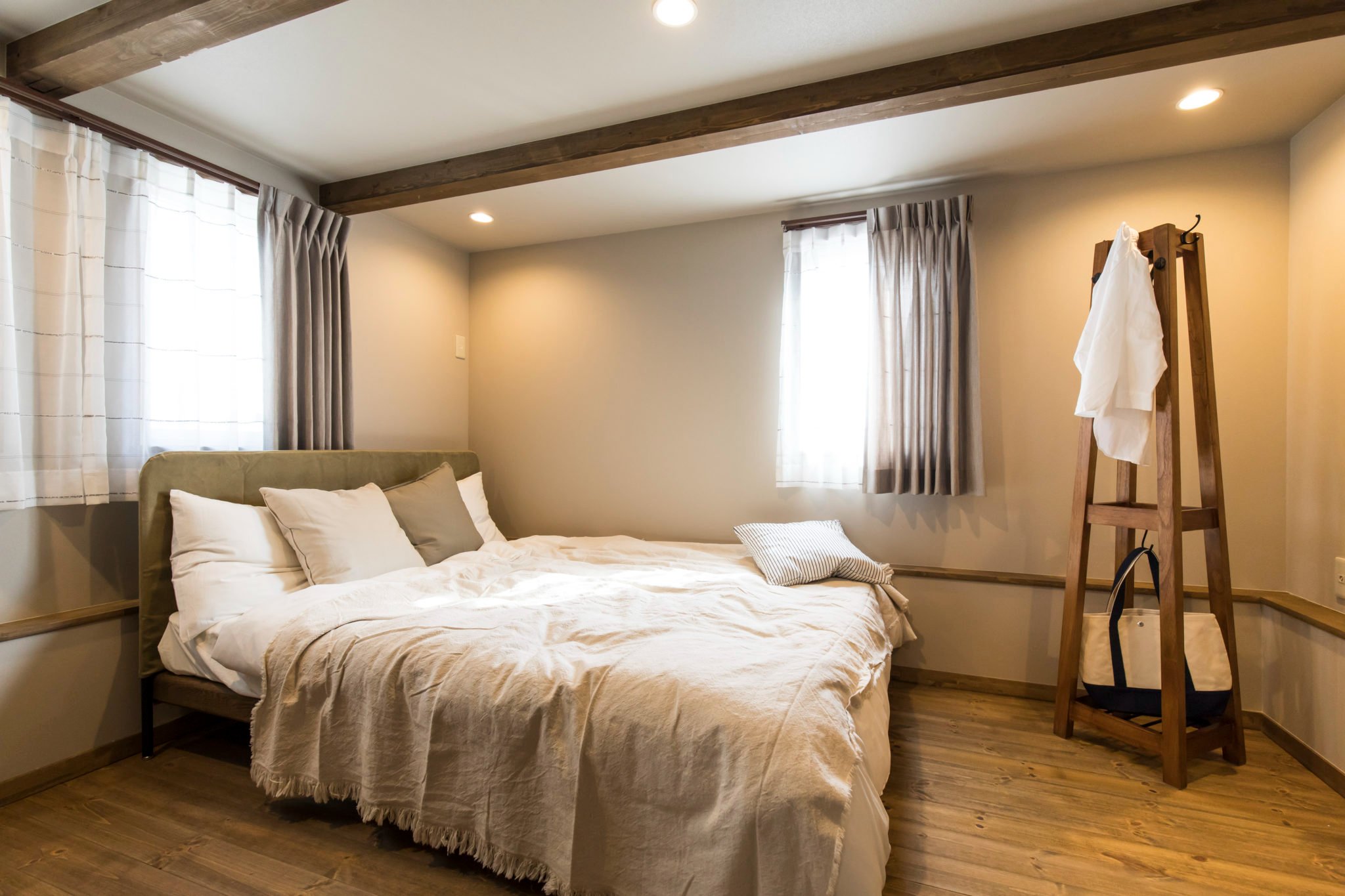 สำหรับห้องนอนจะมีรูปแบบการตกแต่งที่เรียบง่าย เพื่อให้เหมาะกับการพักผ่อน ภายในห้องจึงไม่เน้นเฟอร์นิเจอร์เยอะ ๆ มีเพียงเตียงขนาดใหญ่ไว้ให้พักผ่อนเท่านั้น