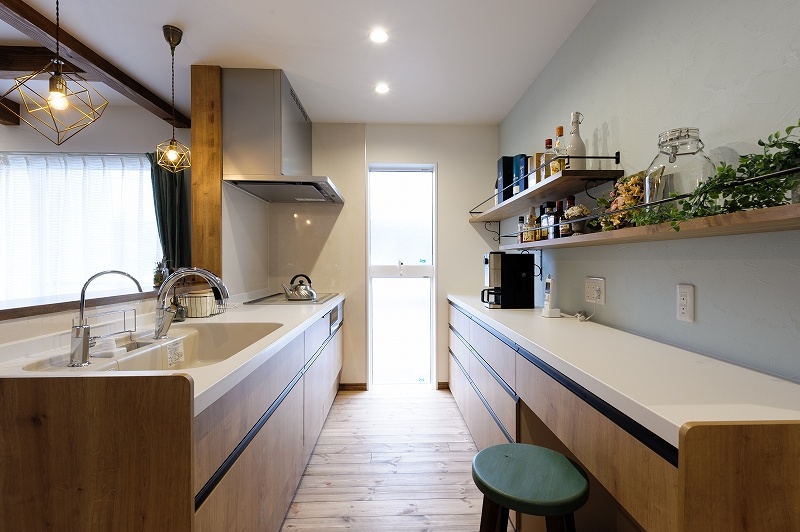 ภายในห้องครัวจะมีรูปลักษณ์ที่เรียบง่าย โดยจะมีเคาน์เตอร์สร้างไว้สองฝั่ง จึงสะดวกในการทำอาหาร หรือแม้แต่การทำความสะอาด
