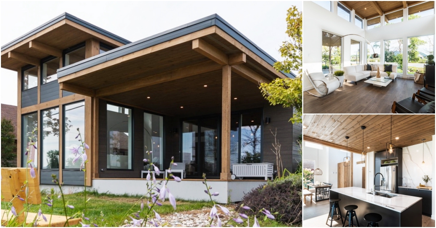 ลักษณะบ้านชั้นเดียว ออกแบบอย่างเรียบง่ายในสไตล์โมเดิร์น โครงสร้างของบ้านเป็นงานไม้ทั้งหลัง ผสานไปกับการใช้กระจกใสบานใหญ่ จึงทำให้บ้านโปร่งสบายและมีบรรยากาศที่เป็นธรรมชาติสุดๆ