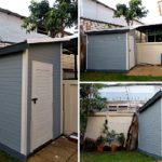 พื้นที่ซึ่งเทปูนไว้แล้ว ขนาด 2.8 * 1.75 เมตร ผมตั้งใจสร้างเป็นห้องเก็บของแบบไม่ถาวร ตั้งงบไว้ 15,000 บาท เอาจริงๆ หมดไป 20,000 บาท เพราะต้องซื้อวงกบ และประตูไม้จริงๆ มาแทนการทำเอง