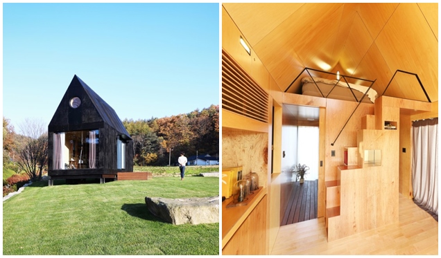 โครงสร้างไม้ทั้งหลัง ออกแบบเรียบง่ายตามแบบฉบับของบ้านเคบิน แต่ก็ประยุกต์ให้มีความเป็นสมัยใหม่ ในวัสดุและโทนสีดำ ตกแต่งสวยงามร่วมกับหลังคาทรงจั่ว ชายคาสั้น มาพร้อมเฉลียงเล็กๆ รองรับกิจกรรมหน้าบ้านอีกด้วย