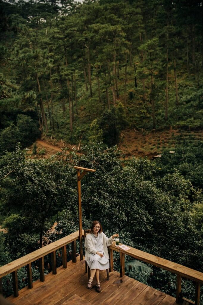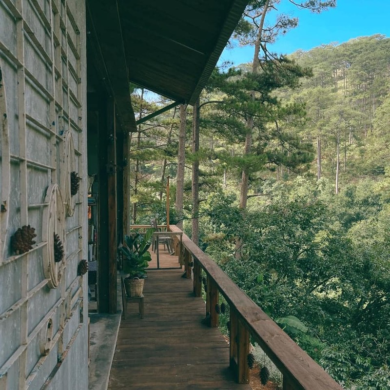 คาเฟ่ไม้แห่งนี้ ตั้งอยู่บนพื้นที่ลาดเชิงเขา จึงมีด้านหนึ่งตั้งอยู่สูง ทำให้เห็นวิวและบรรยากาศจากมุมสูงที่สวยงามได้ด้วย