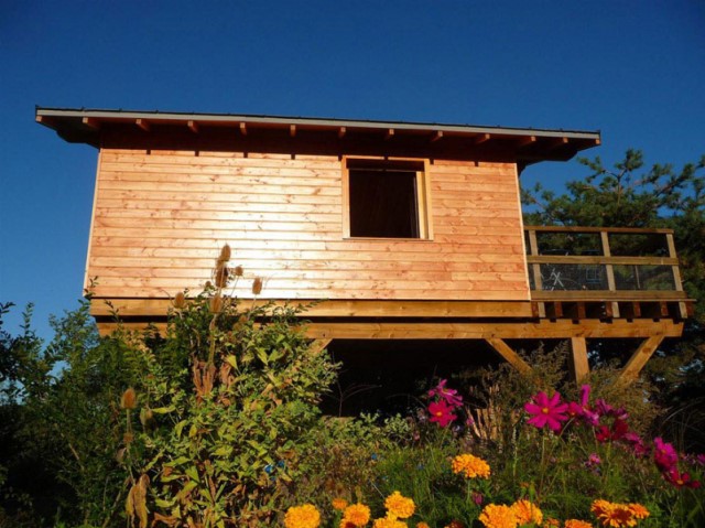 บ้านขนาดเล็กๆ ออกแบบคล้ายบ้านสตูดิโอ ด้วยโครงสร้างไม้ ยกพื้นพองาม ตกแต่งด้วยไม้ทั้งหลัง ที่นำมาดัดแปลงให้ได้รูปทรง และสร้างเป็นตัวบ้าน ในรูปทรงของบ้านสี่เหลี่ยม เรียงง่าย หลังคาเพิงหมาแหงนลาดเอียงเก๋ๆ มาพร้อมเฉลียงขนาดเพียงพอกับความต้องการที่หน้าบ้าน