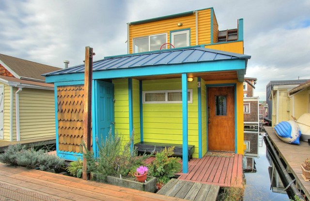 ดีไซน์ตัวบ้านให้เป็นเรือนแพ ที่มาพร้อมเฉลียงทำเป็นท่าเทียบเรือ ไปได้ทุกที่ ไอเดียบ้านหลังนี้ ยังเหมาะกับการนำไปปลูกสร้างบนบก ตามสวน เนินเขาก็ได้