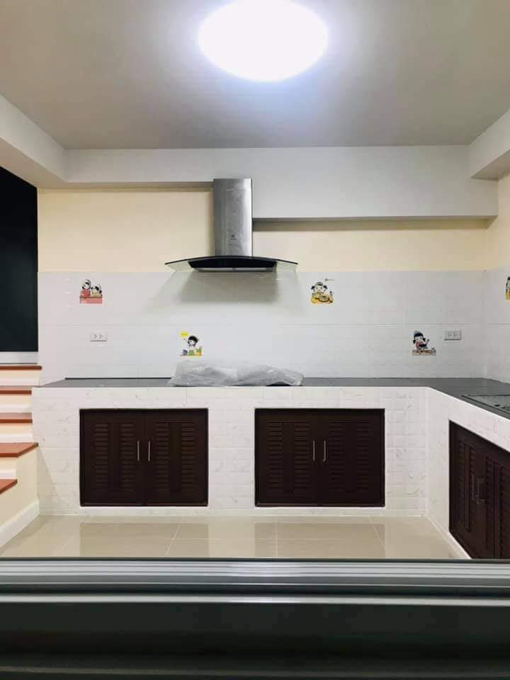 สำหรับห้องครัว ก็เป็นอีกพื้นที่หนึ่งที่มีความกว้างขวาง ถูกติดตั้งด้วยเคาน์เตอร์ครัวแบบติดผนังที่มาพร้อมปล่องควัน จึงให้ความสะดวกสบายสุด ๆ