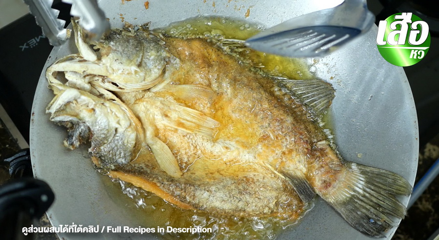 1. เริ่มด้วยการซื้อปลากระพงจากตลาด (เพื่อน ๆ สามารถให้ทางร้านที่ขายปลาแร่ปลาให้ บอกเขาว่าจะนำไปทอด)